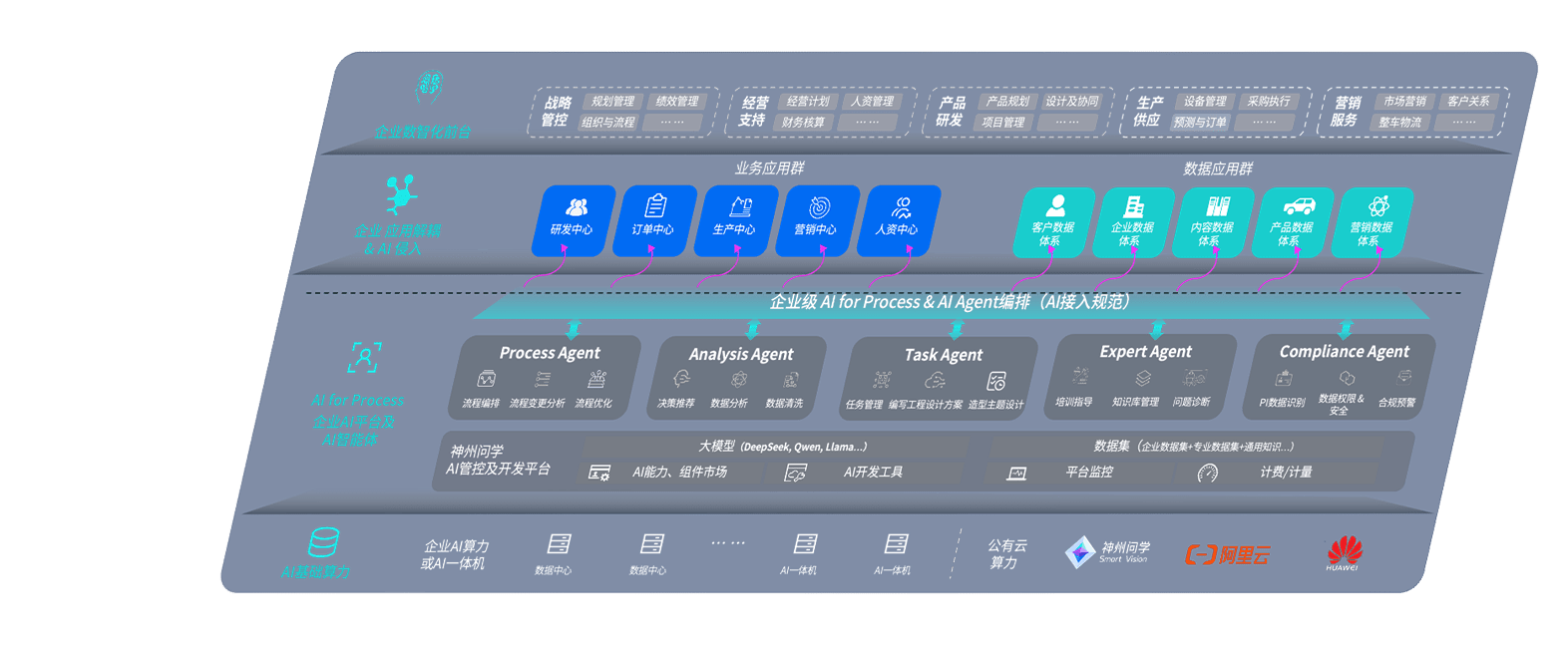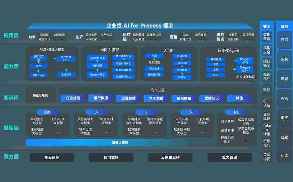 腾博tengbo9885官网问学智车解决方案是一套基于AI技术的汽车行业智能化系统,,,,覆盖从底层算力到顶层AI应用的全栈方案。。方案由算力层、、模型层和应用层组成:算力层,,,方案支持多种一体机配置,,,,具备云端灵活部署、、多云适配以及动态优化计算资源的能力;模型层,,,,腾博tengbo9885官网问学平台版提供了企业级AI应用一站式构建与管理平台,,,,支持基于后训练强化技术的汽车企业专属模型的训练、、评测和运营;应用层,,腾博tengbo9885官网问学DeepSeek版提供包括超级员工、、、、智能招采、、、智能营销、、、、智能客服、、、AI for BI等一系列解决方案,,可助力汽车行业实现数字化转型,,,让管理更智能、、、、响应更敏捷。。。