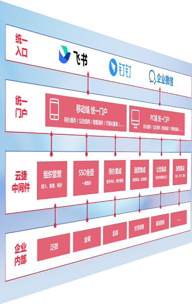 对协作平台提供支持服务,,,支持企业应用与协作平台对接,,,,包含组织同步、、消息集成、、待办集成等。。支持目前主流的协作平台:钉钉、、企微和飞书。。